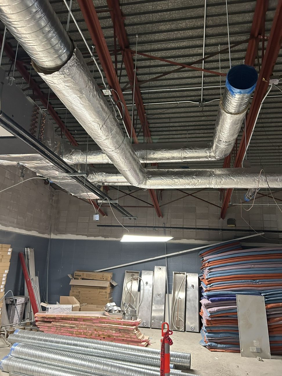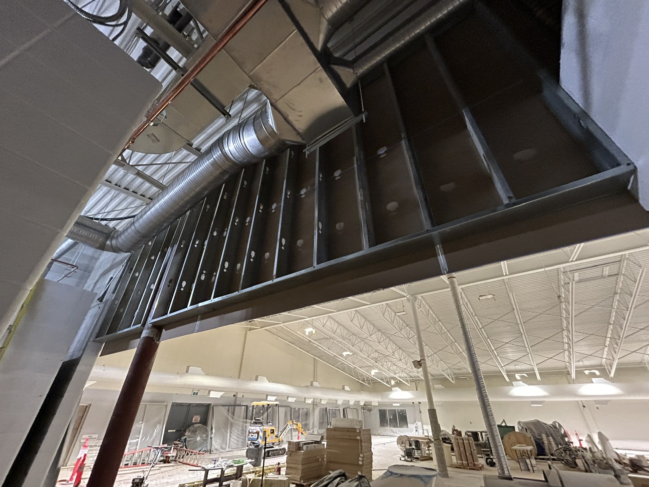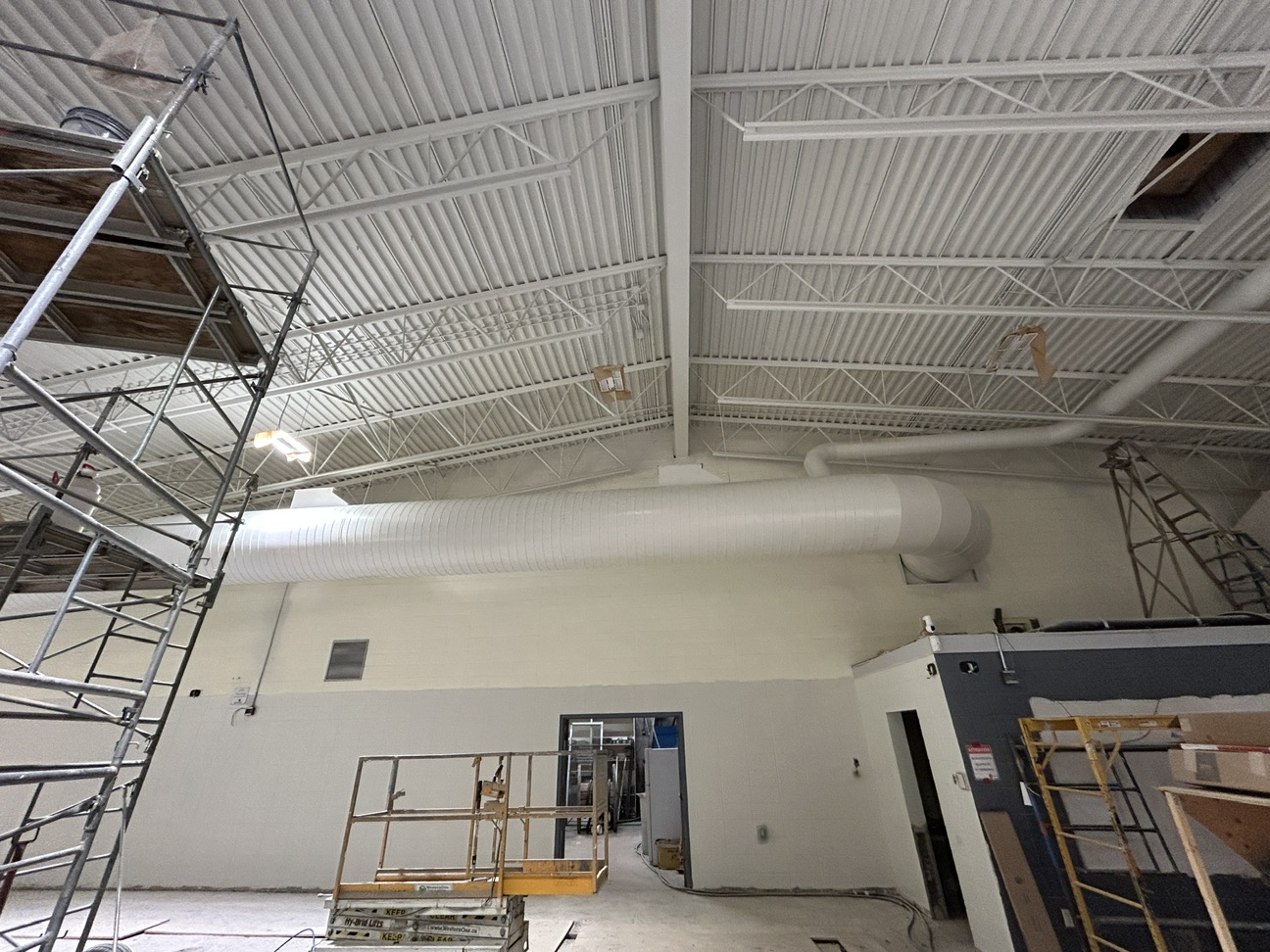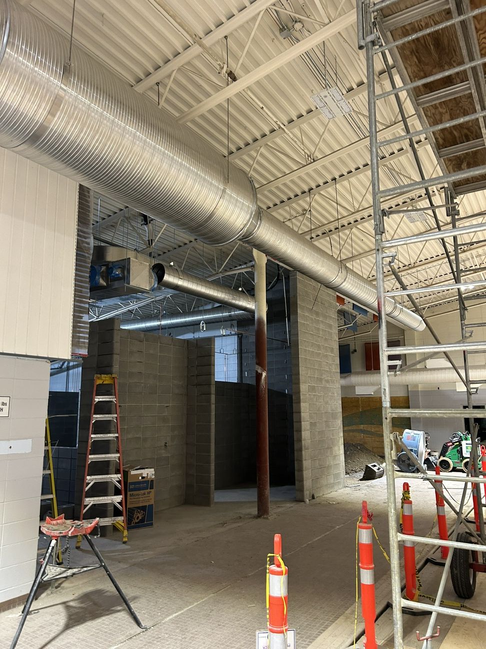 - Working on installing a large fan in the mechanical room as well as heating coils in the reception area and multipurpose room