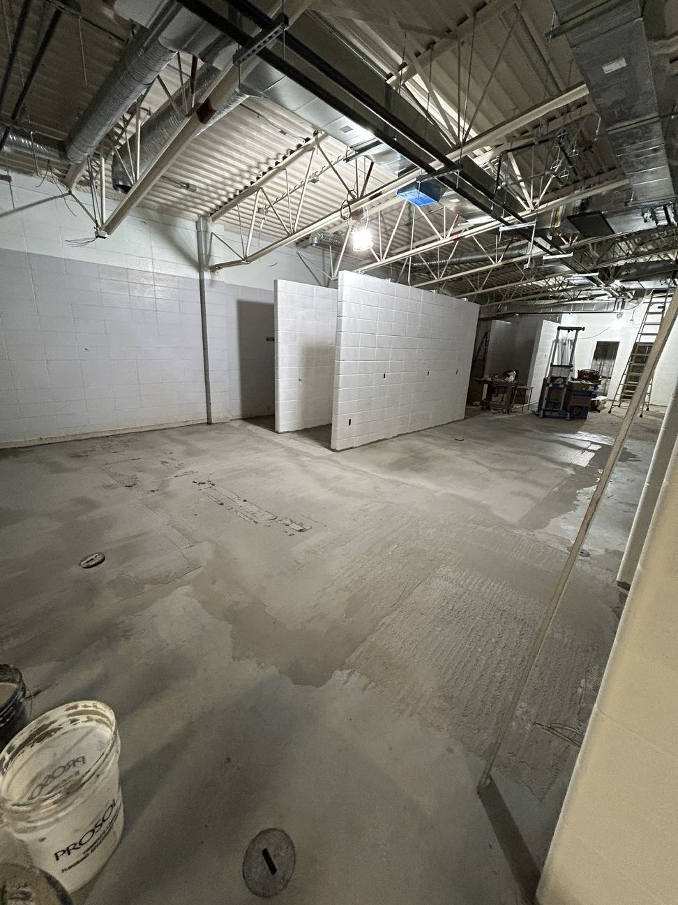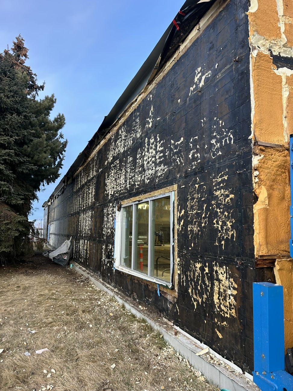 - Concrete demolition and spray foam demolition on the west and south exterior walls continue