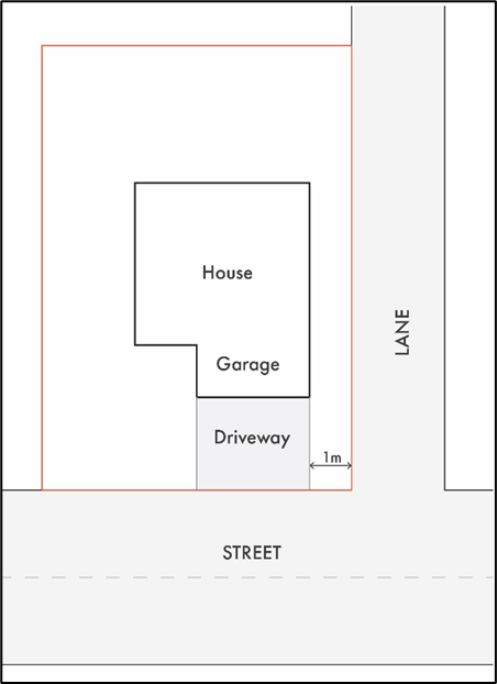 as measured at the point where the driveway crosses the parcel boundary onto the boulevard